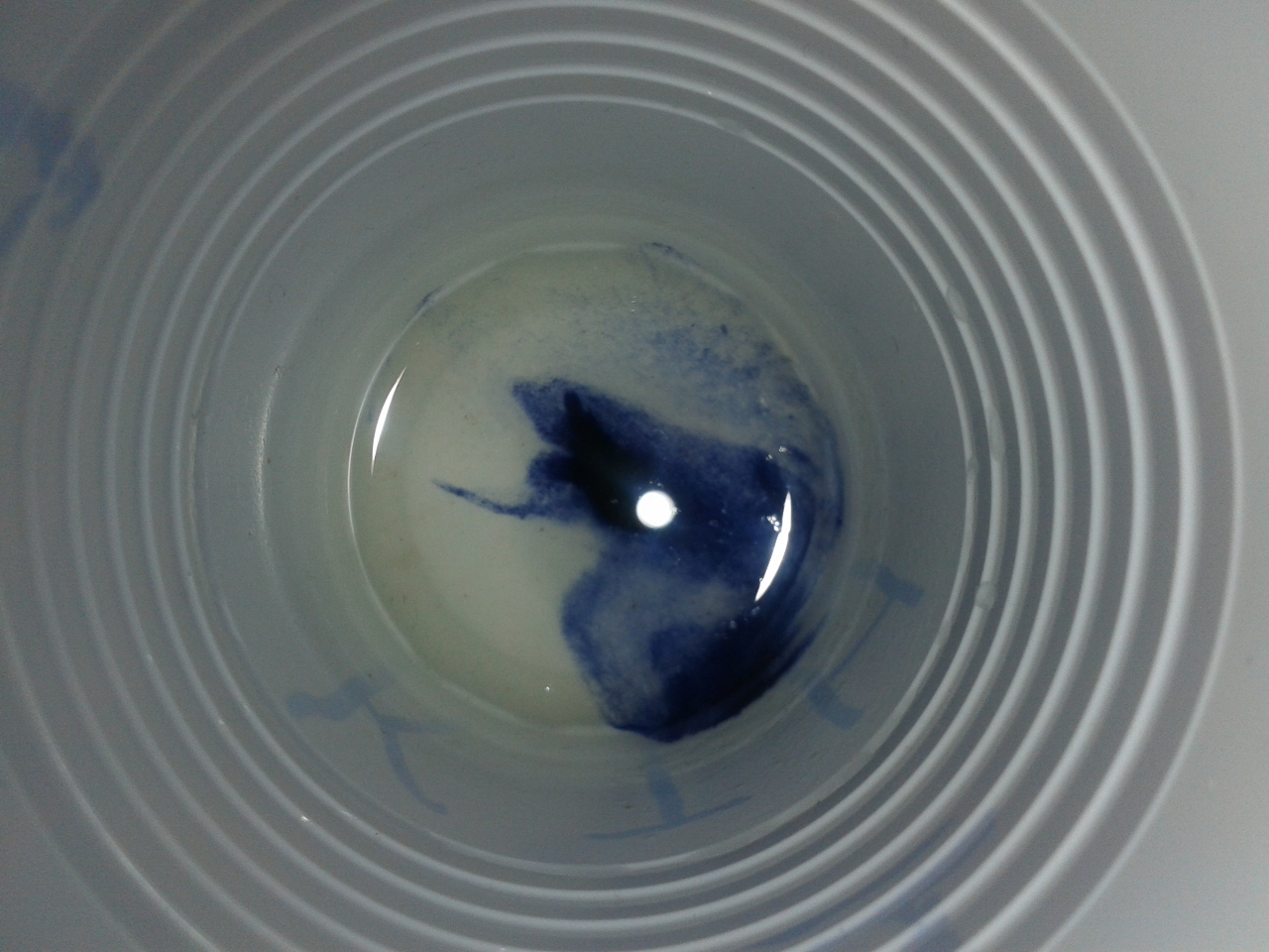 - We gingen naar voren toen onze naam werd geroepen en we deden 1 druppel joodoplossing in onze plastic bekertje met watermonster. We zwenkten het bekertje voorzichtig.